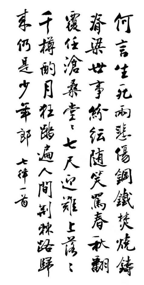 Posted on May 12, 2022May 12, 2022 by mimihappier字,真漂亮 原诗 by @滑琴唯恐惊花梦 #海底诗社# 有位书法家帮这首七律《致一位远方朋友》题了书法 七律 (韵部 下平七阳) 何言生死两悲伤,钢铁焚烧铸脊梁 世事纷纭随笑骂,春秋翻覆任沧桑 堂堂七尺迎难上,落落千樽酌月狂 踏遍人间荆棘路,归来仍是少年郎