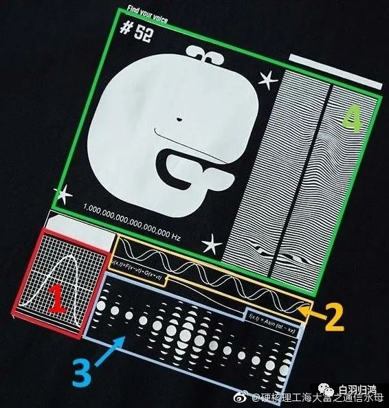 @硬核理工海大富之通信水母: 都说隔行如隔山。我经常觉得时尚界和数学界之间隔的应该是喜马拉雅山。服装设计师们把数学公式印衣服上前,似乎从来不做功课的。 如果说在成年人的衣服上印一堆小学算数,姑且可以勉强算是童心未泯。那乱用数学符号,完全不管符号是什么意思,就真的很难忍。比如某品牌的衣服上印个爱心,还非要给爱心开平方根。这是要说穿这衣服的顾客,爱心大打折吗?当然,也有稍好一点的设计师,知道抄抄大学数学书。 至少这样,满衣服堆砌的公式本身不会有错,看起来也够复杂。但这些公式要表达什么,和品牌有什么关系,依然是不知所云。似乎对大多数时尚设计师来说,数学公式不过就是好看的图案, 何必认真。 这种敷衍的态度,在理工人看来,就像大伙儿走大街上看到老外身上纹满歪七扭八、不知所云的中文一样。虽然感谢他们对中国文字的厚爱,但不小心闹了笑话的话,那种尴尬也真的能让咱脚趾扣地。 所以,作为一个理工人,我必须要大喊:EHz·Z能把时尚设计、品牌理念和硬核科学结合得天衣无缝,真的很了不起! 比如,我们EHz·Z鲸鱼T上的那些神秘的图案和公式(图一图二),就绝对不是随便选的。它们不光有数学和科学的意义,而且还是个关于品牌理念的小小连环画,藏着一个温馨的成长故事。 没看出来? 哈哈, 那就让这篇文来为大家解密这个鲸鱼T里的科学和浪漫的密码吧。 第一幕(鲸鱼T图案1): 小故事的起点在这个鲸鱼T左下角的图案里。 网格背景前的曲线,勾画出的是一个正弦波。 如同一个孤独的人类,正弦波拥有着单一的频率, 代表着单调的声音,只能随着时间如钟表一样独自起伏(动图三)。 第二幕(鲸鱼T图案2): 这一幕里,孤独的正弦波遇到了和它同频的另一个 伙伴。图案2下特意标注的u(x,t)=F(x-vt)+G(x+vt) 的公式里,x代表水平方向位置,t代表时间。这个公式说明的是: 这两个波不光是同频, 而且它们“双向奔赴”。 图案2描绘的就是在二维的平面上欢快的交错起舞的这两段正弦波(动图四)。 它们就像找到知音的我们,因为爱有回应,所以生命都变得有趣起来。 第三幕(鲸鱼T图案3): 这一幕里,通过图案3上面标注的三维波公式 f(x,t)=Asin(at-kx),同频的两个波的维度从二维变化到了三维空间。 就如人类拓宽自己的生命的维度、探索更为广阔的空间时, 能发现众多新的美好一样;在这个更高纬度的空间,两段波的交错之舞,也呈现出更为复杂和美丽的模样 (动图五)。 而鲸鱼T以简单的几何图形,艺术而精准的在图案3呈现了这一三维空间的舞蹈的精髓。 第四幕 (鲸鱼T图案4): 这里,两个波进一步在频率上丰富了自己,它们不再是单一频率,而是如现实中的鲸鱼之歌一样,每一个波都是不断变化的众多频率的独特集合。这样的情况下,它们交错共鸣的结果就变成了一片波涛汹涌的海面(动图六)。 而它变幻莫测的起伏,被EHz·Z的设计师以众多曲线,巧妙的凝结在了鲸鱼T的一隅里。 EHz·Z的世界, 正如这个波的故事一样。 同频而又独特的声音,互相吸引,在这里汇聚交织。彼此丰富,冲破限制,最终形成如大海一般的壮美交响乐,时而波澜壮阔,时而涟漪微澜, 变幻无穷, 永无止境。 后记: 看到动图是不是很酷? 是我把鲸鱼T上的公式,放到数学软件MATLAB里运行出来的。 我们鲸鱼T,妥妥的硬核理工T,又严谨又漂亮。 我有时觉得,跨越了科学和时尚之间的喜马拉雅山的EHz·Z, 和我对主理人的印象巧妙的重叠了。 既有文艺多情的一面,也有运动阳光的时刻,看似风马牛不相及,却又如此和谐的共存,时时有惊喜, 处处不一般。品牌隐藏着的这些意想不到的小心思,看似平常却又深刻。不知道有没有也勾起你心底的好奇心和探索欲,去重新认识自己与世界的联系呢?那就让我们一起回应 EHz·Z的理念。 Find your voice. Find yourself.